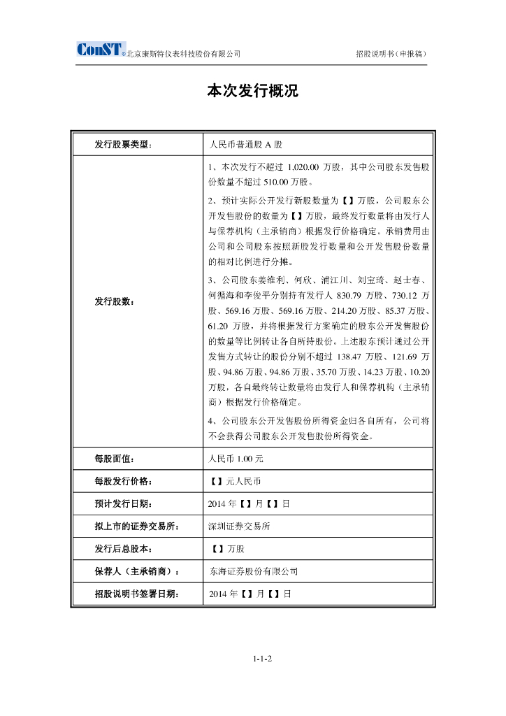 北京康斯特仪表科技股份有限公司深交所创业板IPO上市招股说明书.pdf