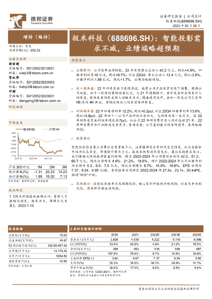 德邦证券:极米科技(688696)-智能投影需求不减,业绩端略超预期.pdf
