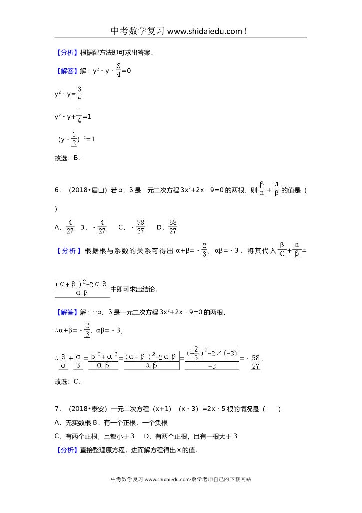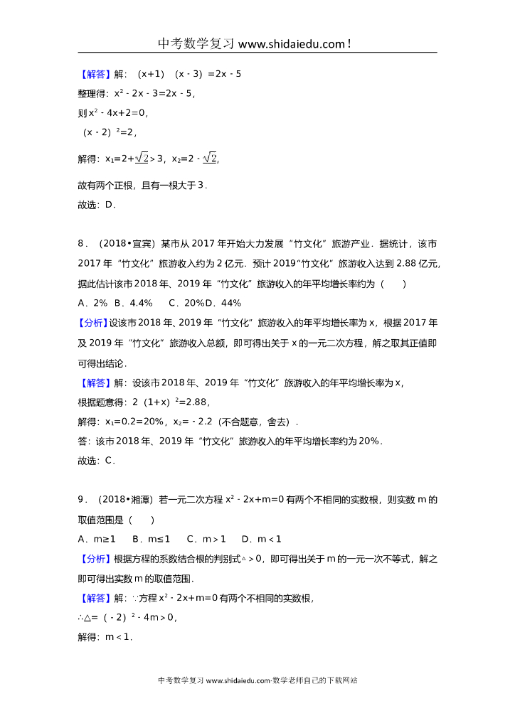 -中考数学试题分类汇编考点10一元二次方程版含解析.doc
