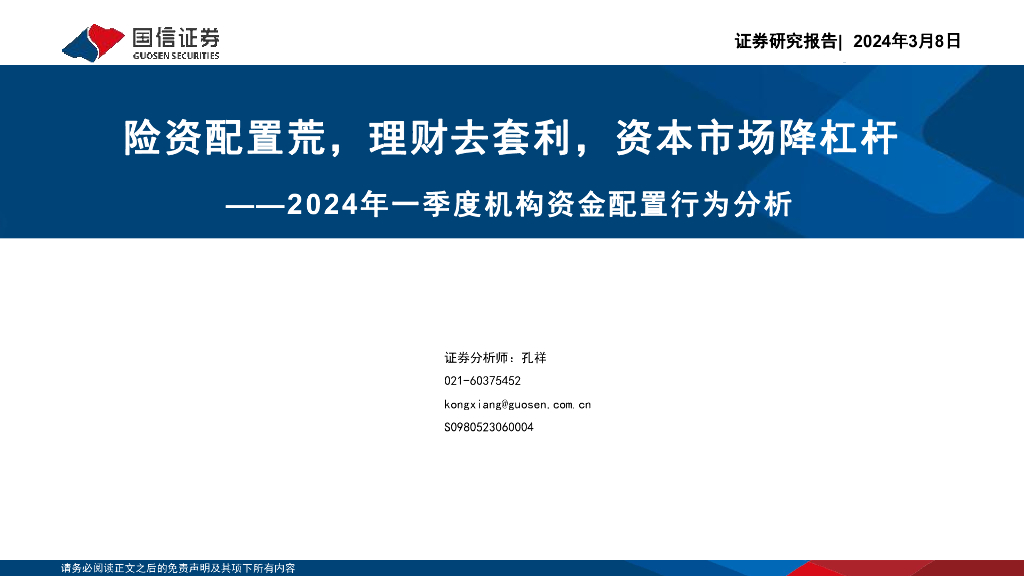 国信证券:非银行金融行业:2024年一季度机构资金配置行为分析险资配置荒, 理财去套利,资本市场降杠杆.pdf