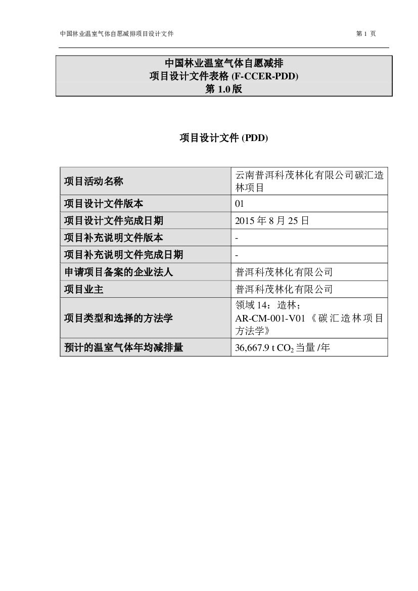 云南普洱科茂林化有限公司碳汇造林项目设计文件(PDD).pdf