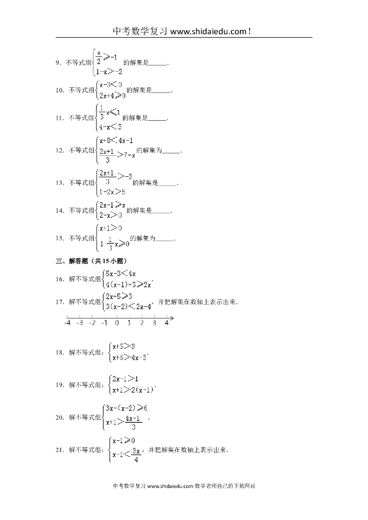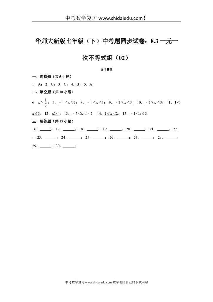华师大新版七年级(下)-中考题同步试卷:8.3-一元一次不等式组(02).doc