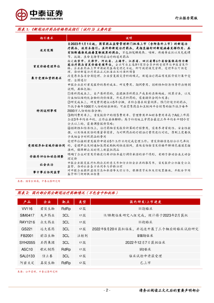 中泰证券:医药生物行业报告简版:国家医保局发布新冠治疗药品定价机制,关注相关产业链投资机会.pdf