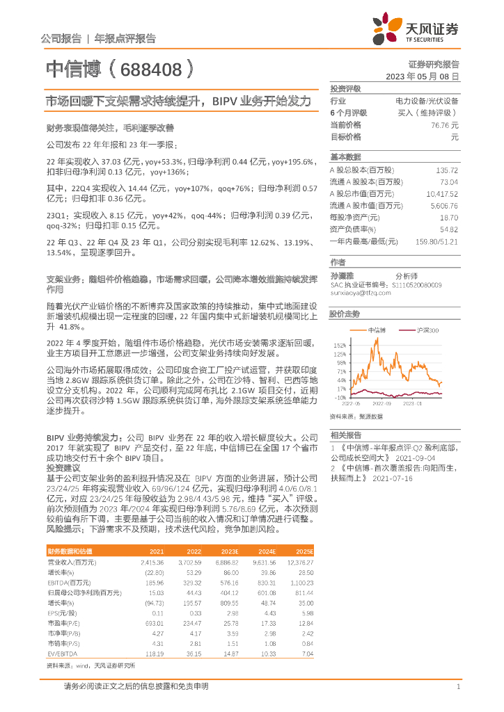 天风证券:中信博(688408)-市场回暖下支架需求持续提升,BIPV业务开始发力.pdf