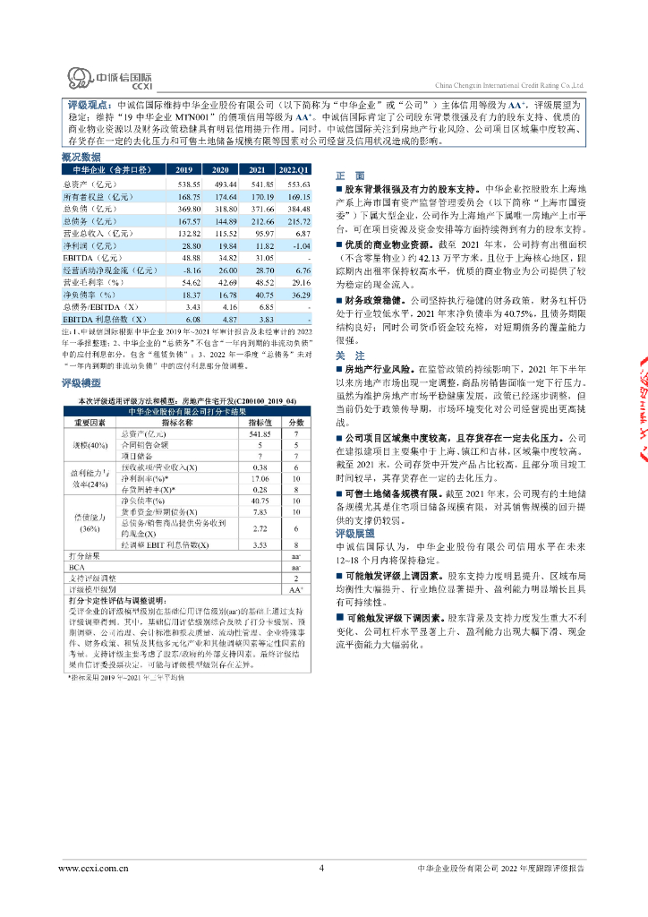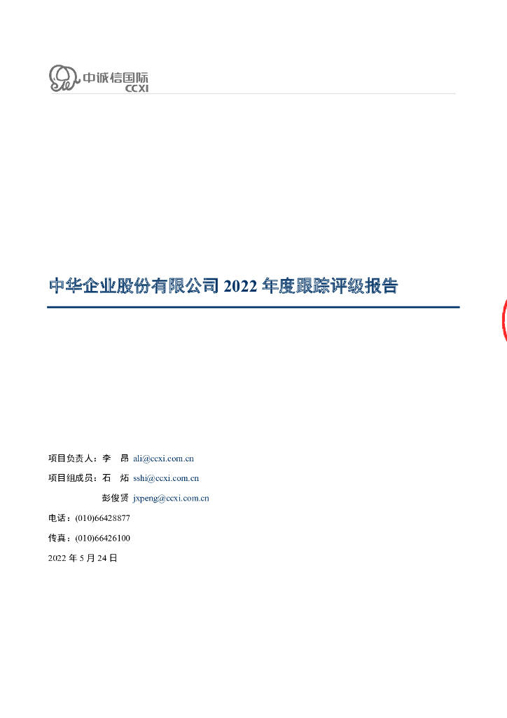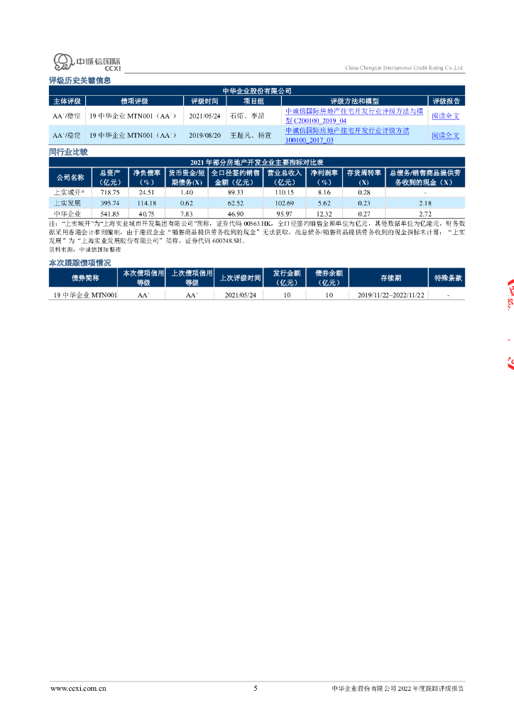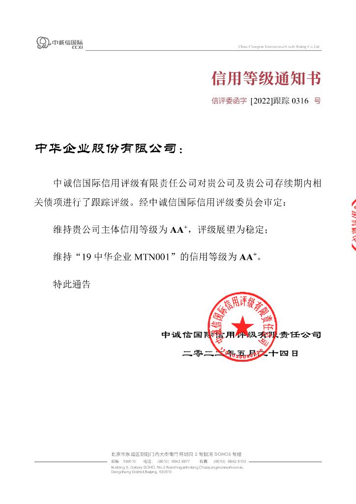 中诚信:中华企业股份有限公司2022年度跟踪评级报告.pdf