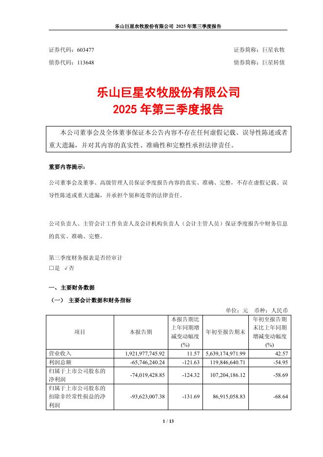 113648-巨星农牧:乐山巨星农牧股份有限公司2025年第三季度报告.pdf
