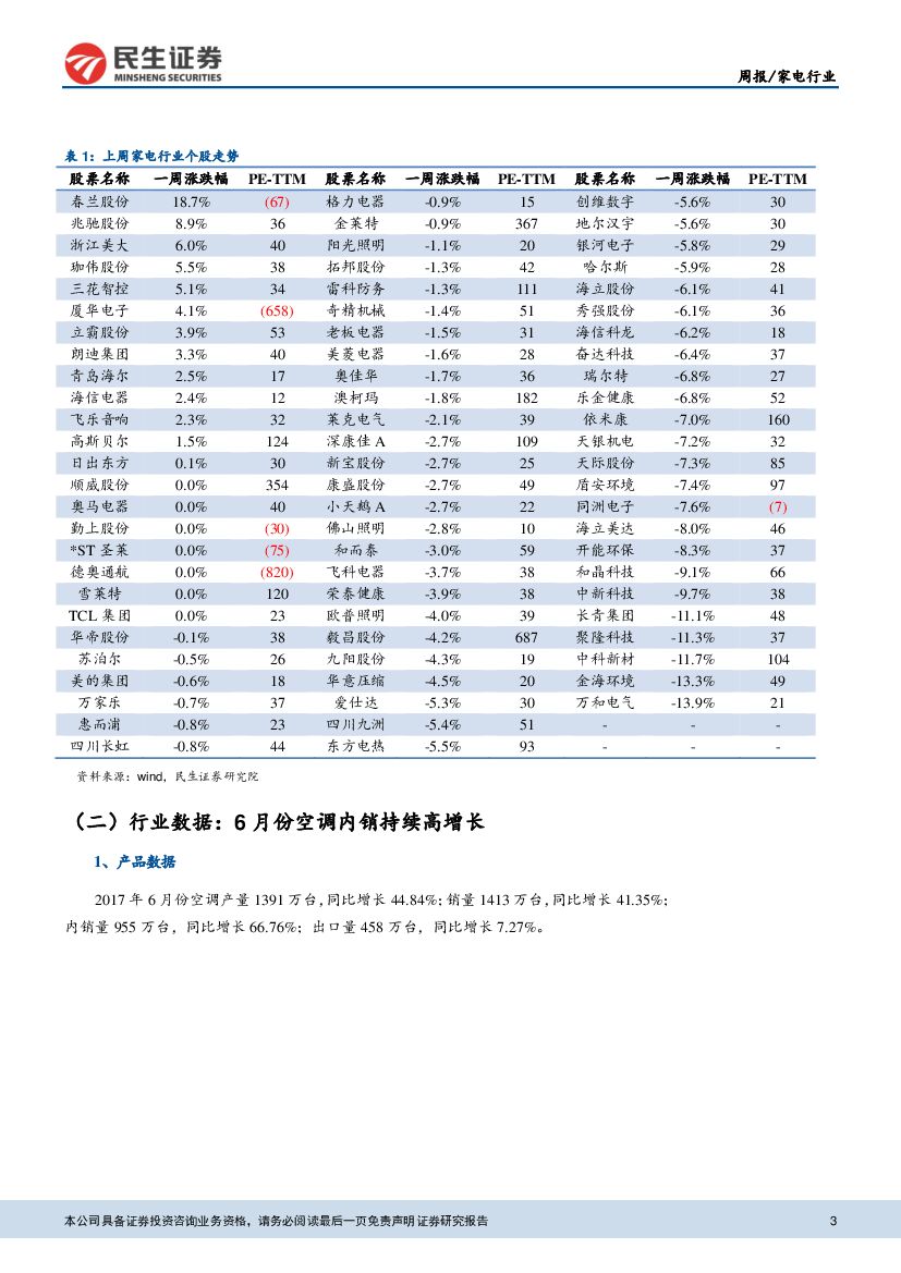 民生证券:家电行业周报:6 月空调内销持续高增长,看好产业链投资价值.pdf
