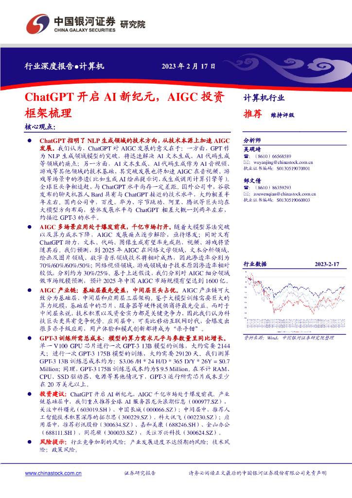 中国银河:计算机行业:ChatGPT开启AI新纪元,AIGC投资框架梳理.pdf