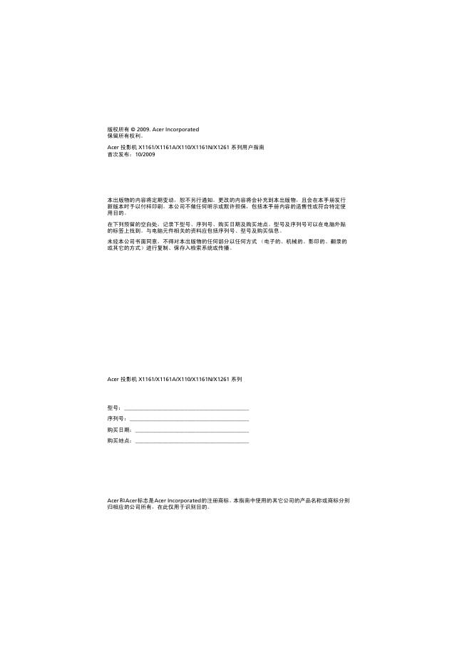 Acer X1161/X1161A/X110/X1161N/X1261系列 投影仪 用户指南.pdf
