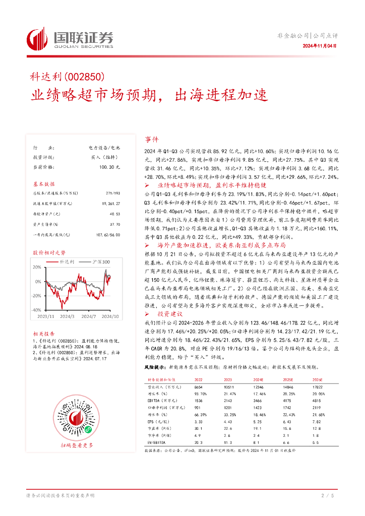 国联证券:科达利(002850)-业绩略超市场预期,出海进程加速.pdf