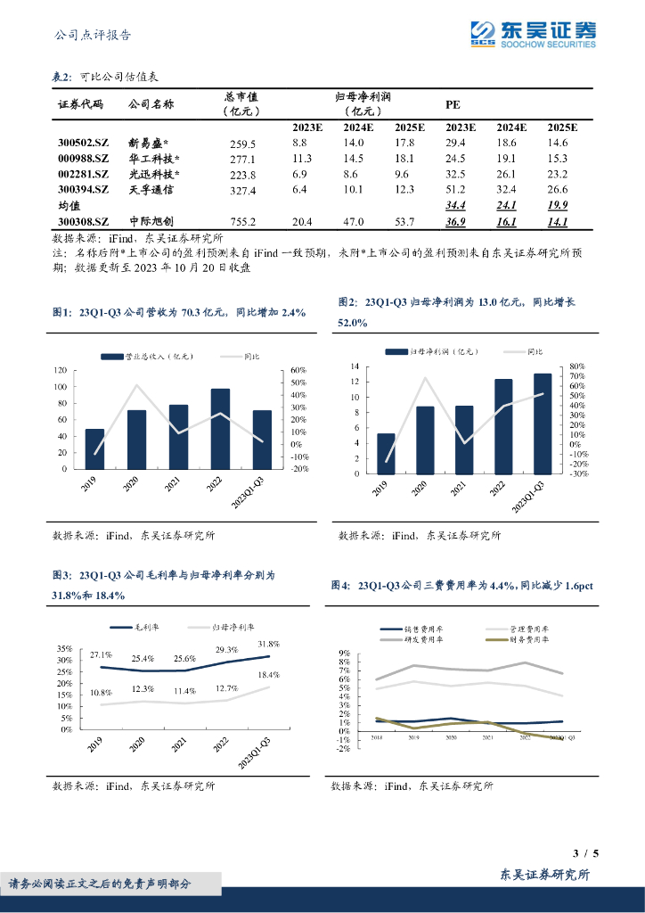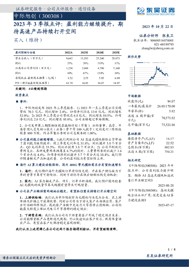 东吴证券:中际旭创(300308)-2023年3季报点评:盈利能力继续提升,期待高速产品持续打开空间.pdf
