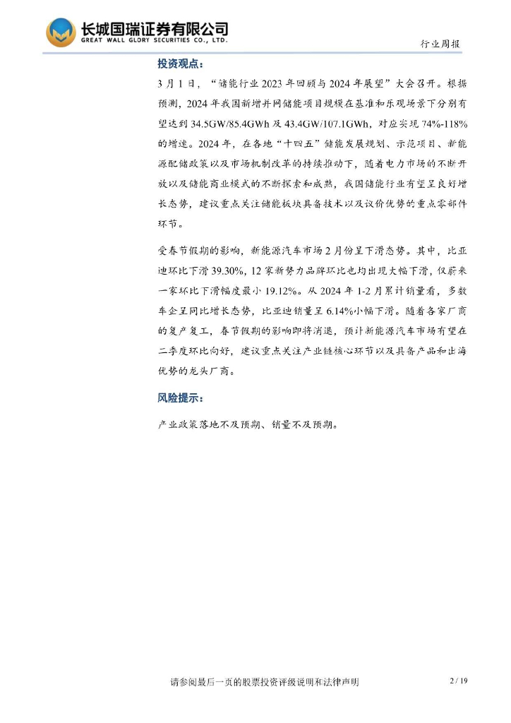 长城国瑞证券:电新行业双周报2024年第5期总第27期:储能板块24年预计维持高增长新能源汽车板块环比有望向好.pdf