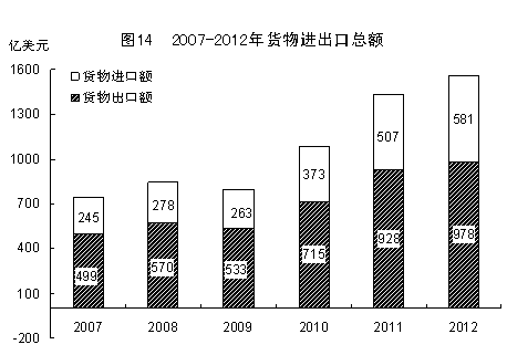 新批对外直接投资项目149个,新批对外投资额8.54亿美元,比上年分别下降35.2%、10.5%。对外直接投资实际投资额5.31亿美元,增长54.5%。对外承包工程完成营业额6.42亿美元,增长27.5%;对外劳务合作劳务人员实际收入总额3.75亿美元,增长20.1%。