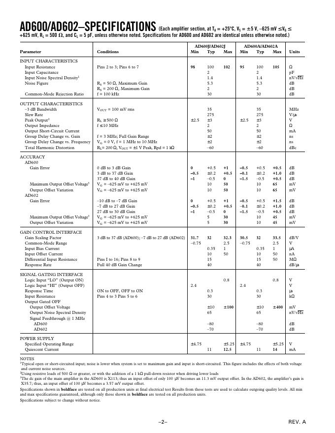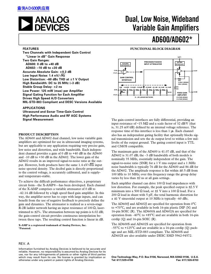 ANALOG DEVICES AD600/AD602* 数据手册.pdf