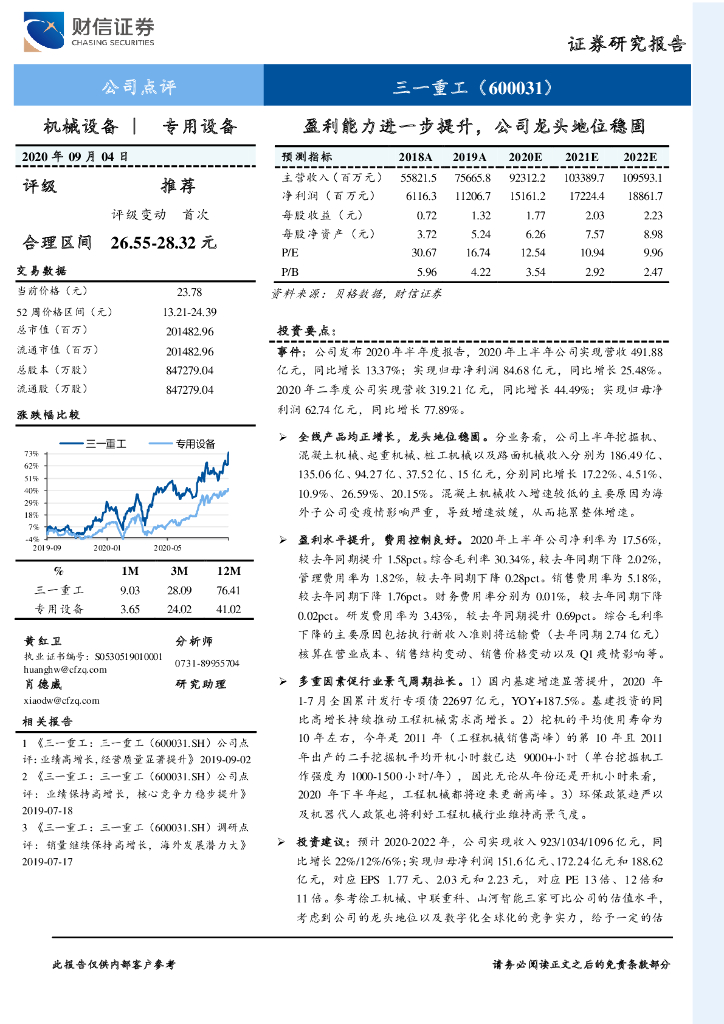 财信证券:三一重工(600031)-盈利能力进一步提升,公司龙头地位稳固.pdf