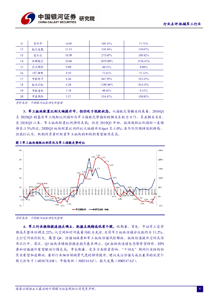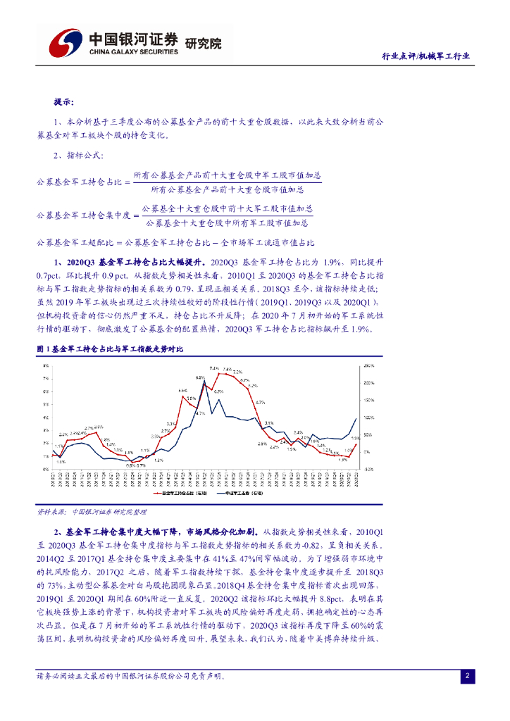 中国银河:2020Q3军工基金持仓分析:基金持仓占比大幅提升,军工板块获全面性加仓.pdf
