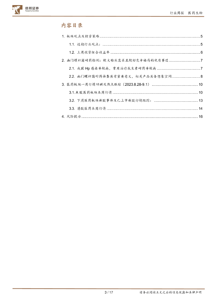 德邦证券:医药行业周报:幽门螺旋杆菌大危害,或可关注检测大市场.pdf