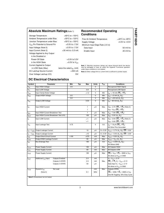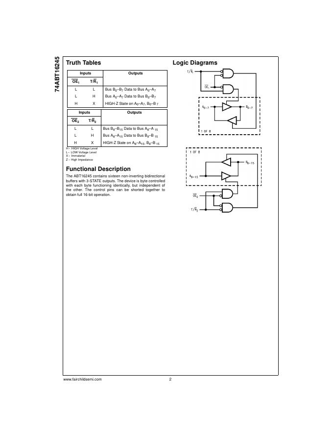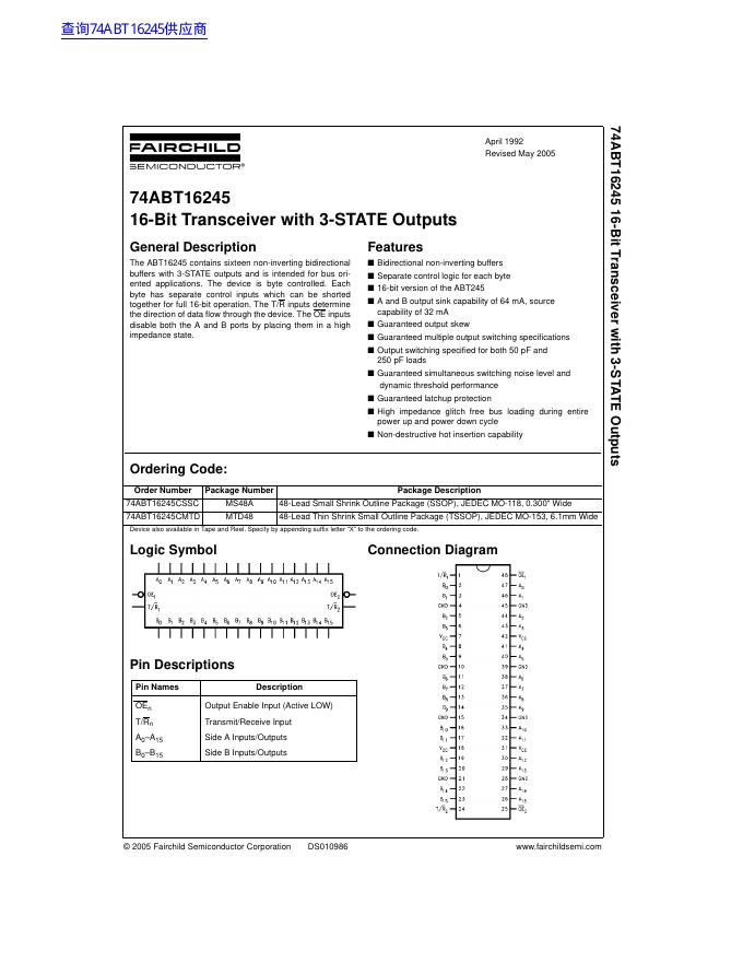 FAIRCHILD semiconductor 74ABT16245 16-Bit Buffer/Line Driver with 3-STATE Outputs 数据手册.pdf