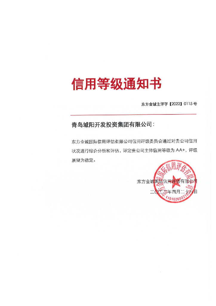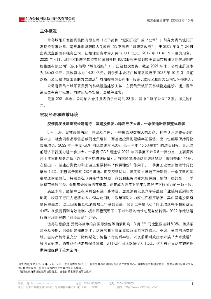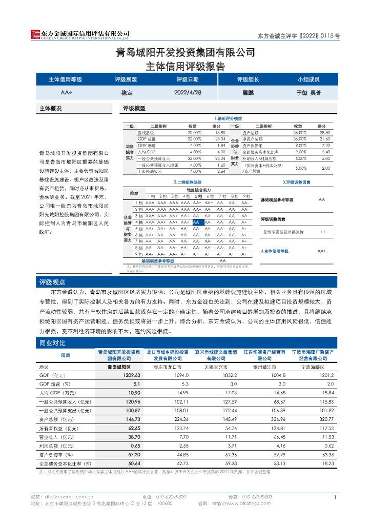 东方金诚:青岛城阳开发投资集团有限公司主体信用评级报告.pdf