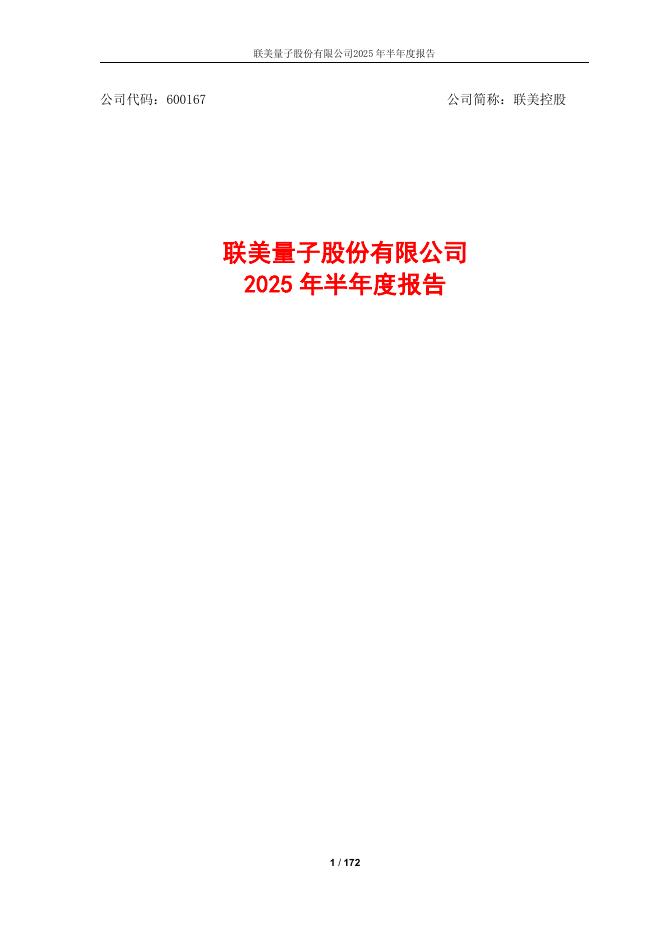 600167-联美控股:联美量子股份有限公司2025年半年度报告.pdf