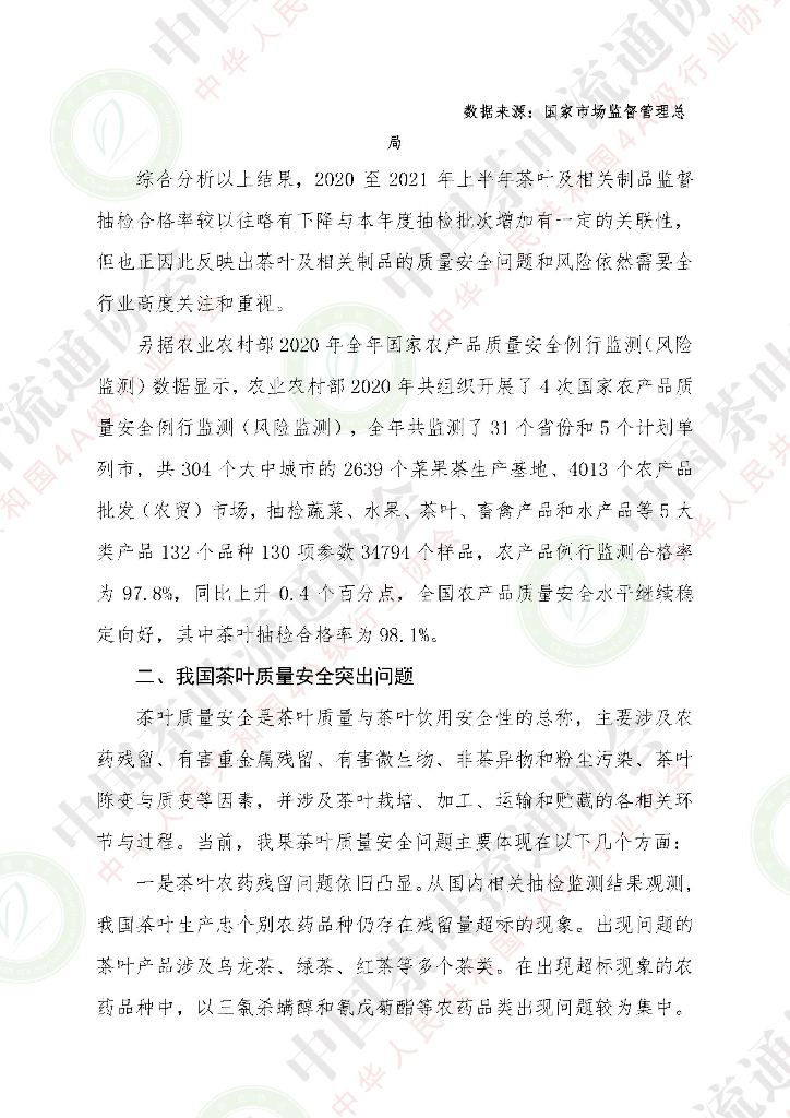 中国茶叶流通协会:2020至2021年上半年我国茶叶质量安全报告.pdf