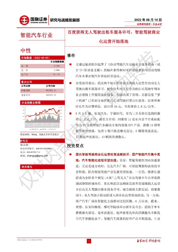 国融证券:智能汽车行业:百度获得无人驾驶出租车服务许可,智能驾驶商业化运营开始落地.pdf