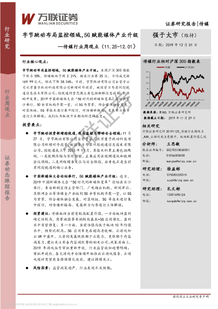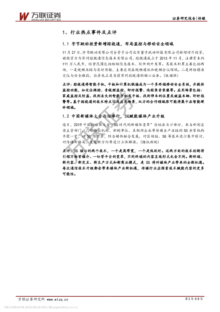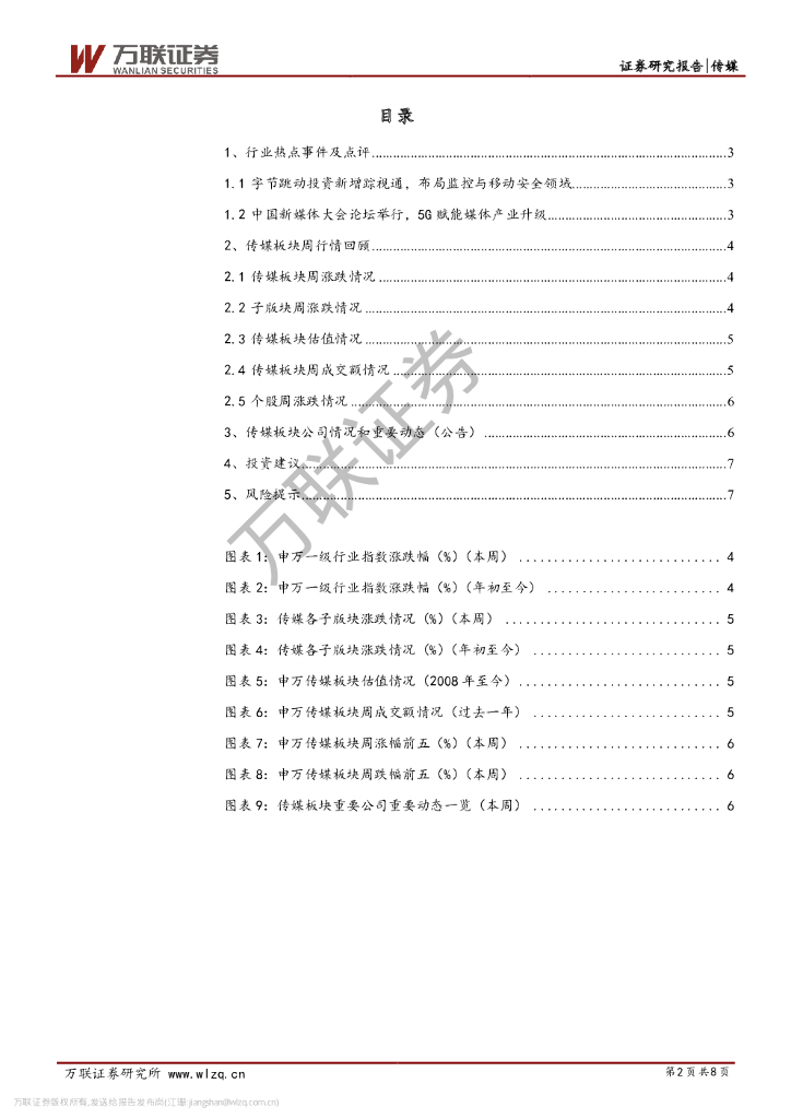 万联证券:传媒行业周观点:字节跳动布局监控领域,5G赋能媒体产业升级.pdf