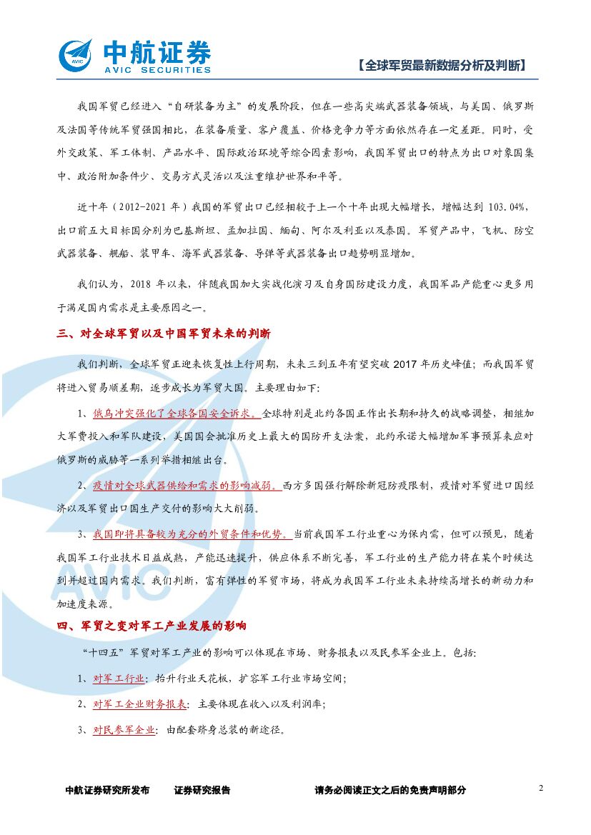 中航证券:军工:全球军贸最新数据分析及判断-止戈为武,以战止战.pdf