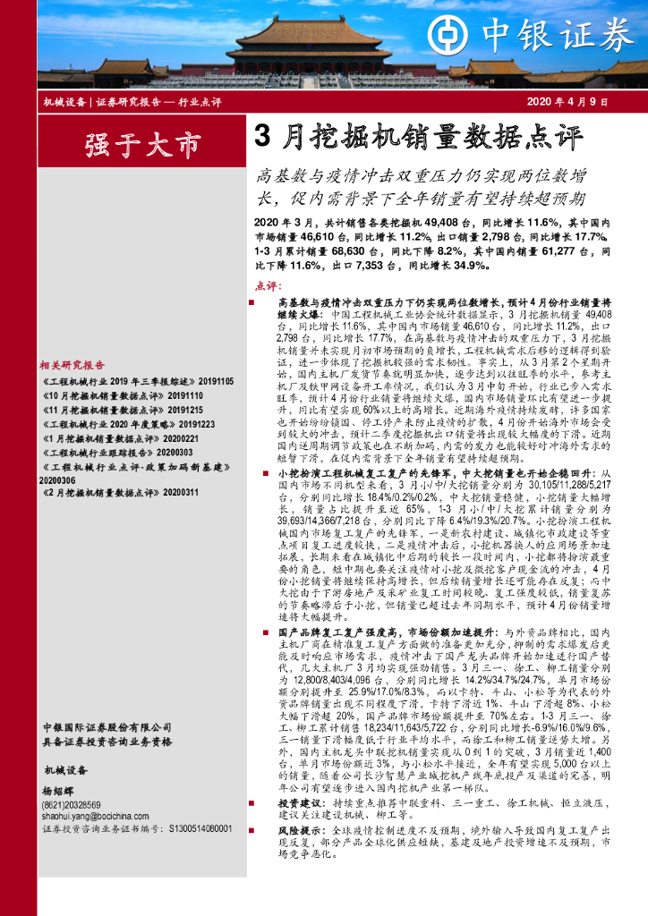 中银证券:3月挖掘机销量数据点评:高基数与疫情冲击双重压力仍实现两位数增长,促内需背景下全年销量有望持续超预期.pdf