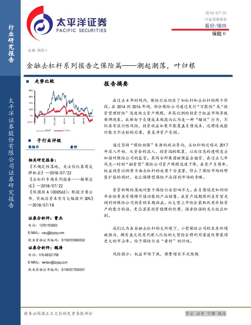 太平洋证券:金融去杠杆系列报告之保险篇:潮起潮落,叶归根.pdf