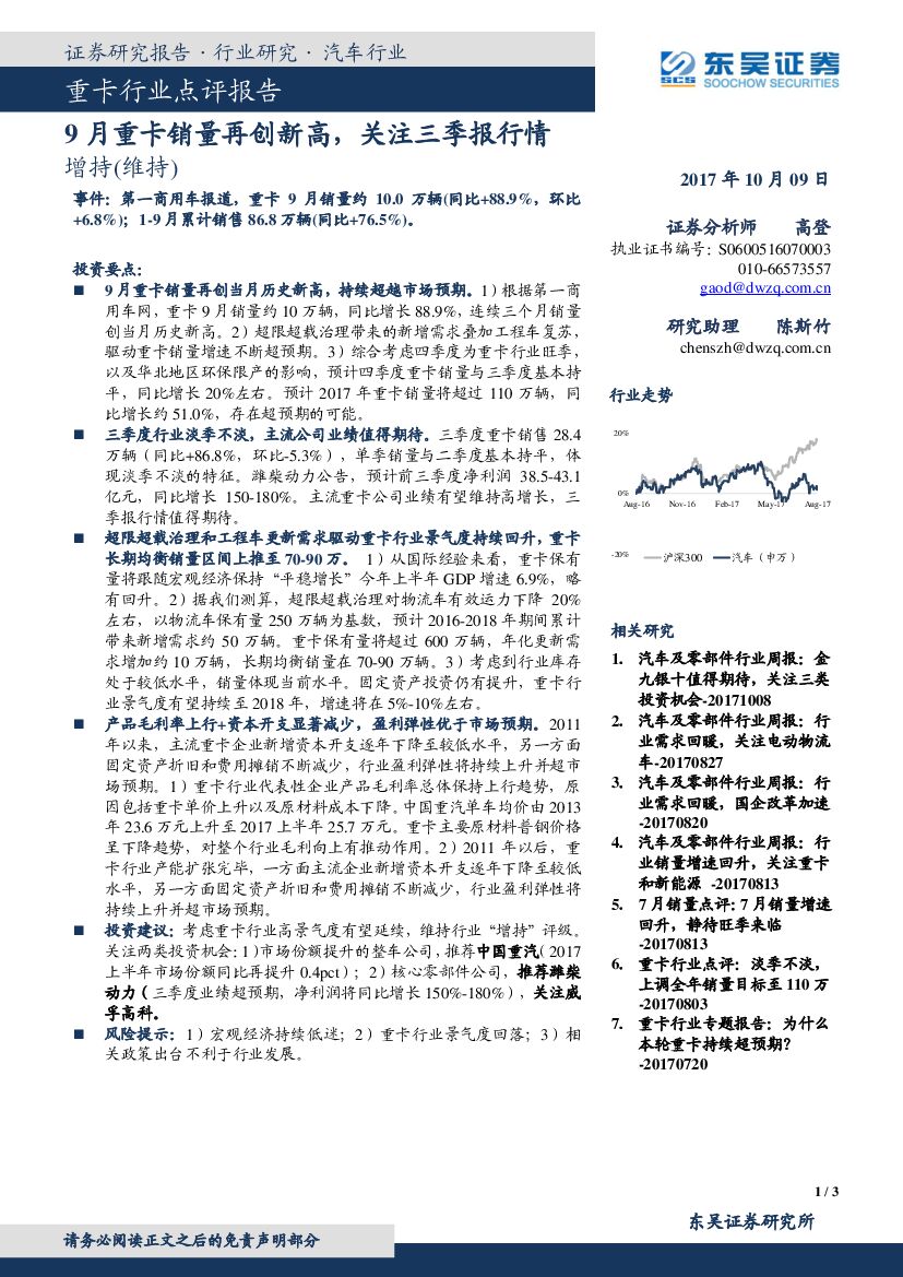 东吴证券:重卡行业点评报告:9月重卡销量再创新高,关注三季报行情.pdf