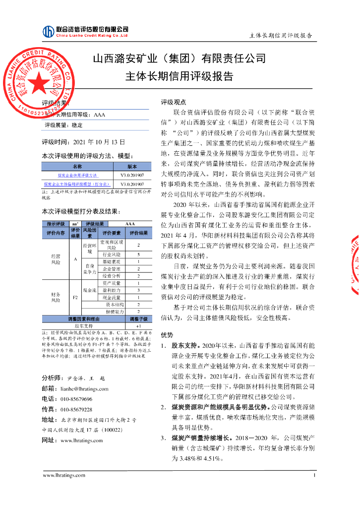 联合资信:山西潞安矿业(集团)有限责任公司主体信用评级报告及跟踪评级安排.pdf