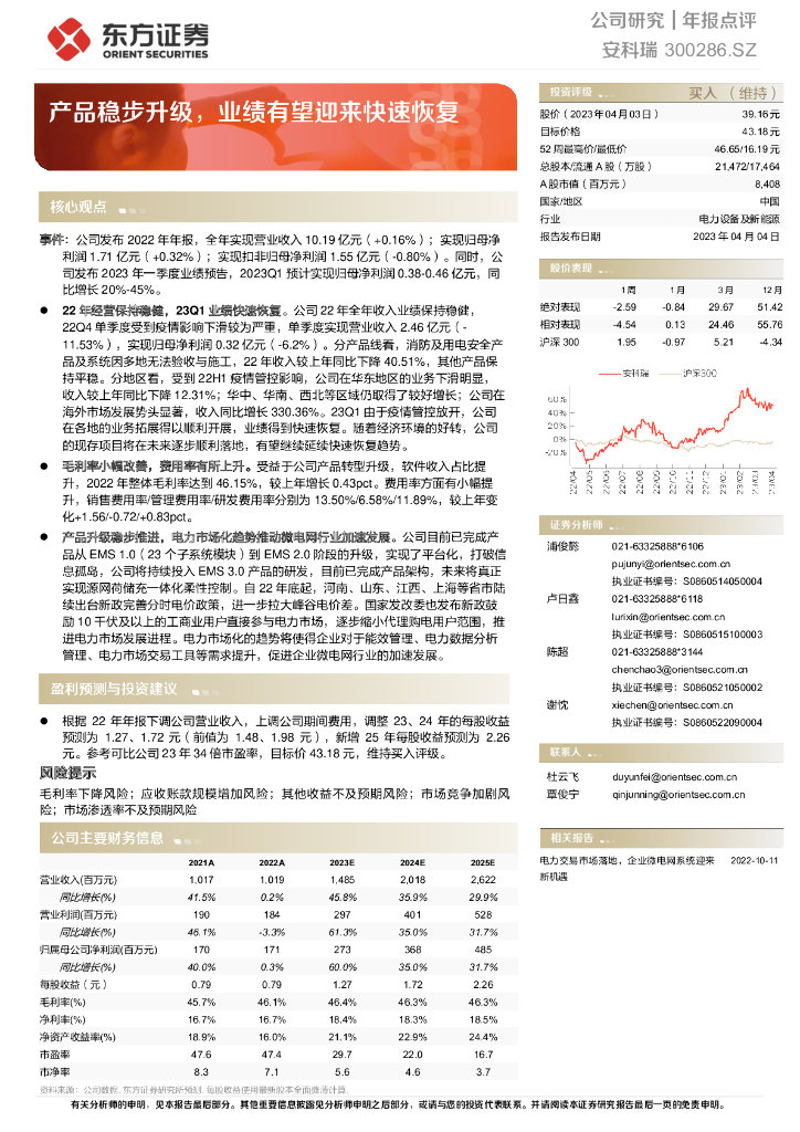 东方证券:安科瑞(300286)-产品稳步升级,业绩有望迎来快速恢复.pdf