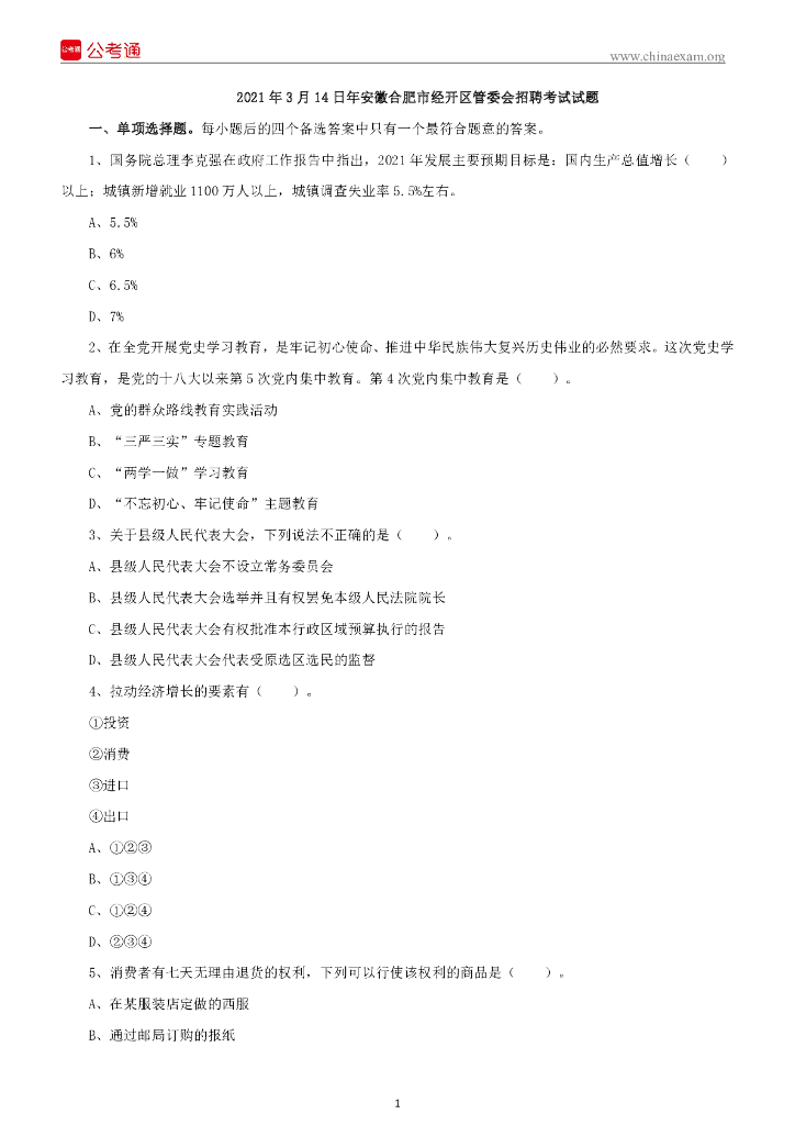 2021年3月14日年安徽合肥市经开区管委会招聘考试试题.pdf