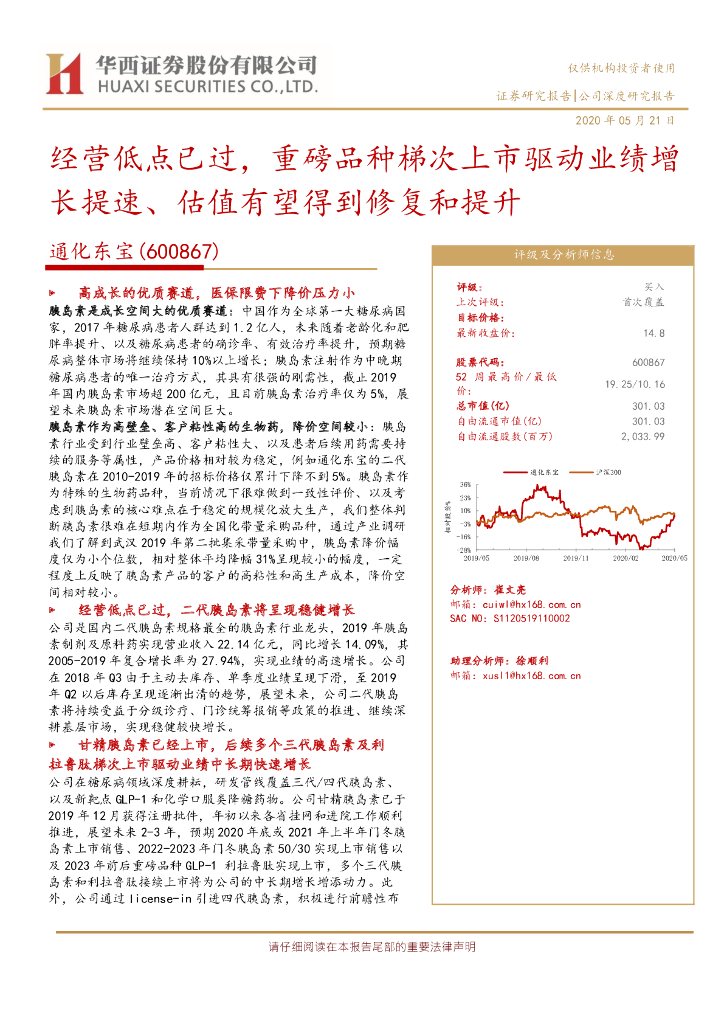 华西证券:通化东宝(600867)-经营低点已过,重磅品种梯次上市驱动业绩增长提速、估值有望得到修复和提升.pdf