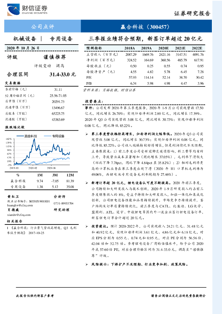 财信证券:赢合科技(300457)-三季报业绩符合预期,新签订单超过20亿元.pdf