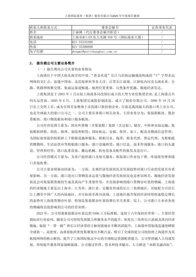 600018-上港集团:上港集团2025年年度报告摘要.pdf