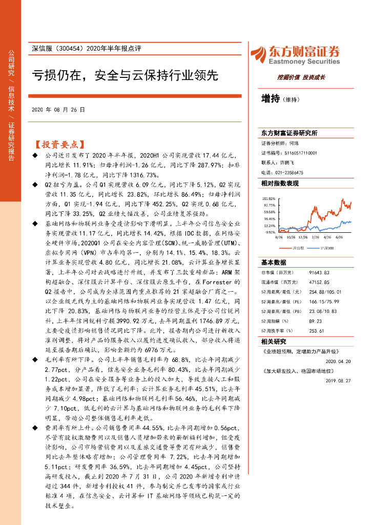 东方财富证券:深信服(300454)-2020年半年报点评:亏损仍在,安全与云保持行业领先.pdf