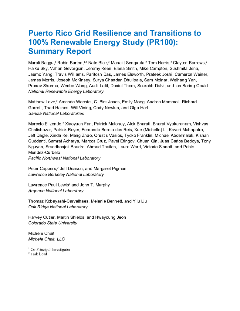 NREL:2024波多黎各电网复原力和100%可再生能源过渡研究(PR100)总结报告(英文版).pdf