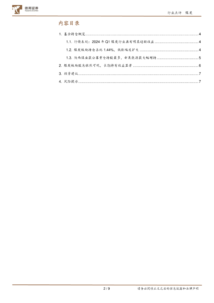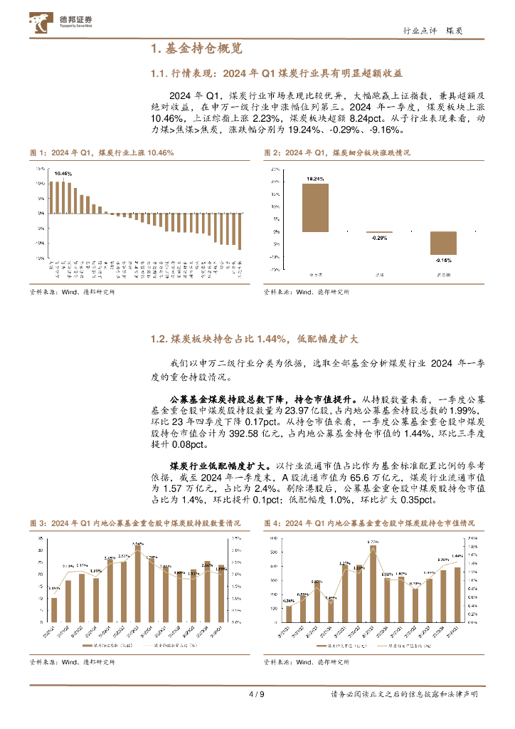 德邦证券:煤炭行业基金持仓分析:2024Q1配置小幅提升,低配幅度扩大.pdf