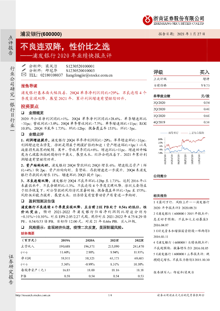 浙商证券:浦发银行2020年业绩快报点评:不良连双降,性价比之选.pdf