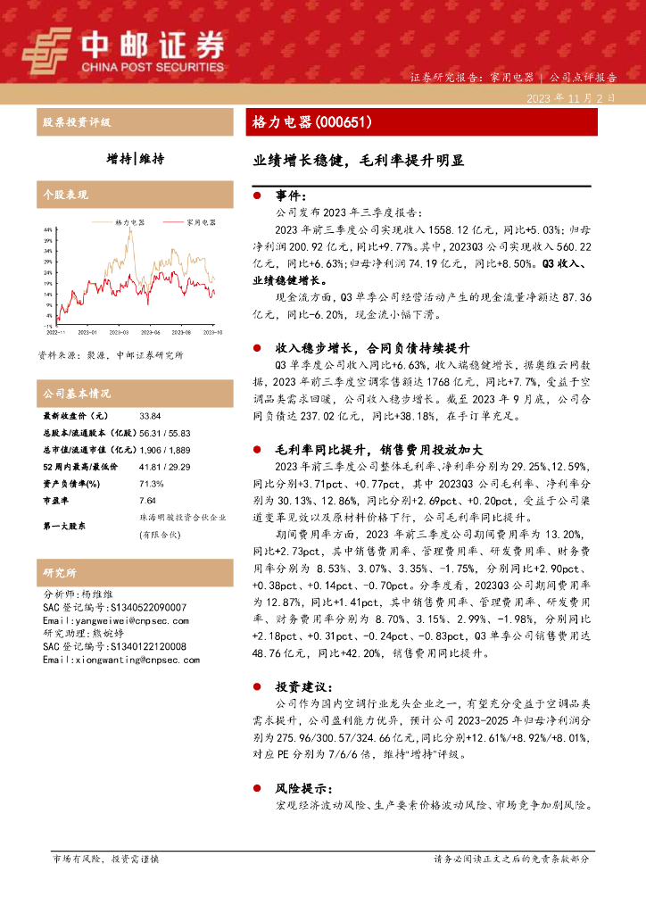 中邮证券:格力电器(000651)-业绩增长稳健,毛利率提升明显.pdf