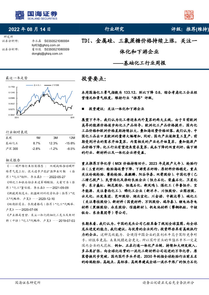 国海证券:基础化工行业周报:TDI、金属硅、三氯蔗糖价格持续上涨,关注一体化和下游企业.pdf