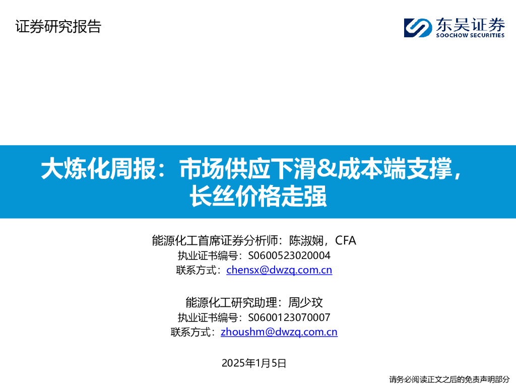 东吴证券:大炼化周报:市场供应下滑&成本端支撑,长丝价格走强.pdf