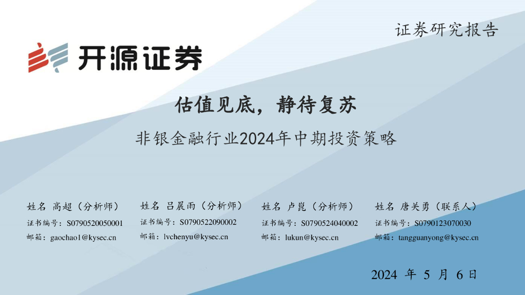 开源证券:非银金融行业2024年中期投资策略:估值见底,静待复苏.pdf