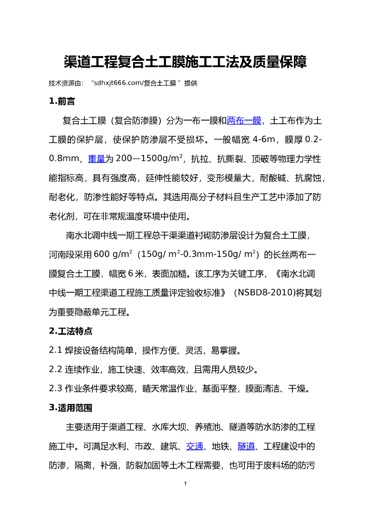 渠道工程复合土工膜施工工法及质量保障.doc