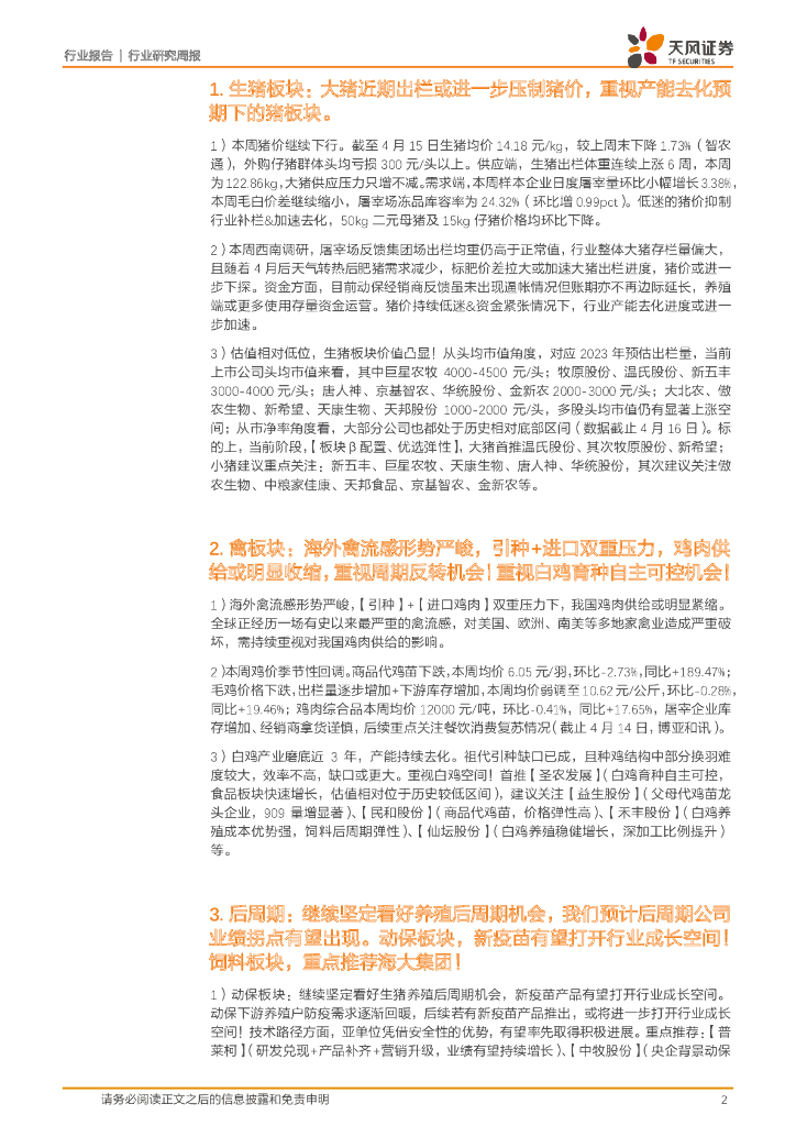 天风证券:农林牧渔行业研究周报:2023年第15周周报:生猪调研后,继续重点推荐生猪板块!.pdf