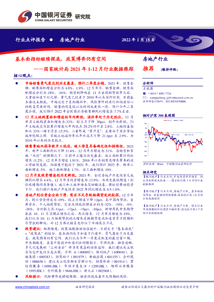 中国银河:房地产行业:国家统计局2021年1-12月行业数据跟踪-基本面指标继续探底,政策博弈仍有空间.pdf