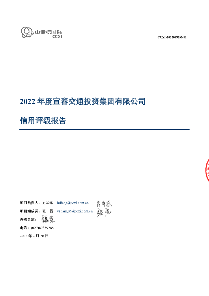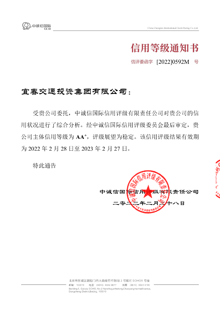 中诚信:宜春交通投资集团有限公司2022年度信用评级报告.pdf