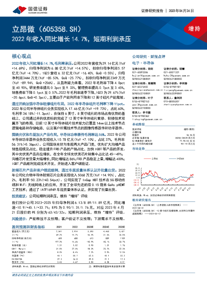 国信证券:立昂微(605358)-2022年收入同比增长14.7%,短期利润承压.pdf